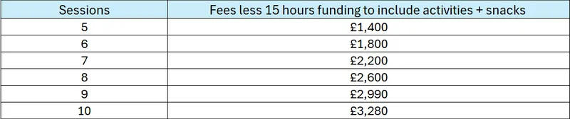 Dair House offers Early Years funding for up to 15 hours per week, funded by the local authority from the term after a child's third birthday until the term of their fifth birthday. Rates of funding are subject to change. See the tables below for funded sessions.